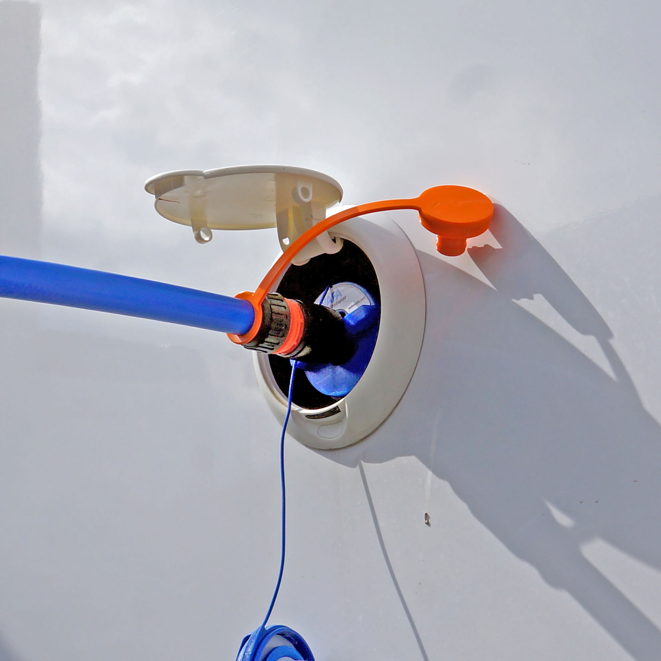Connection cable and drinking water hose, for filling the water tank in motorhomes or caravans.