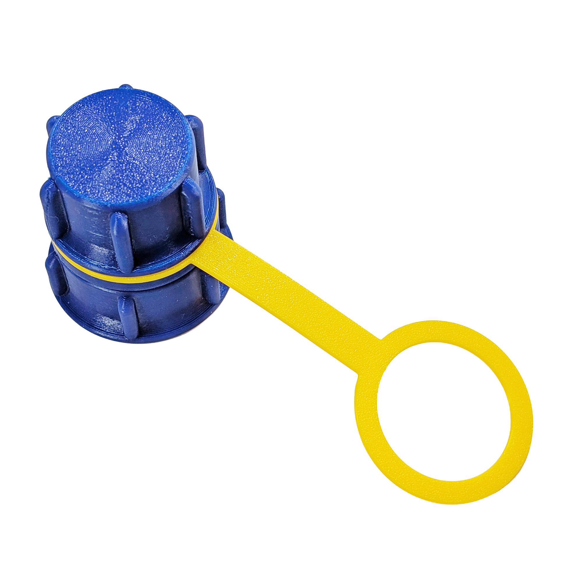 1 Schlauchadapter mit Messingadapter (für Gardena oder ähnlich) und Schraubdeckel mit Dichtung. Hängende Decksicherung: